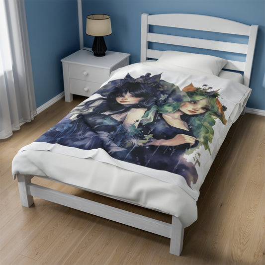 Gothic Dark Fairy - Velveteen Plush Blanket - Ethereal Beauty for Your Home Decor, Velvety Dark Fairy Tale Bedding,