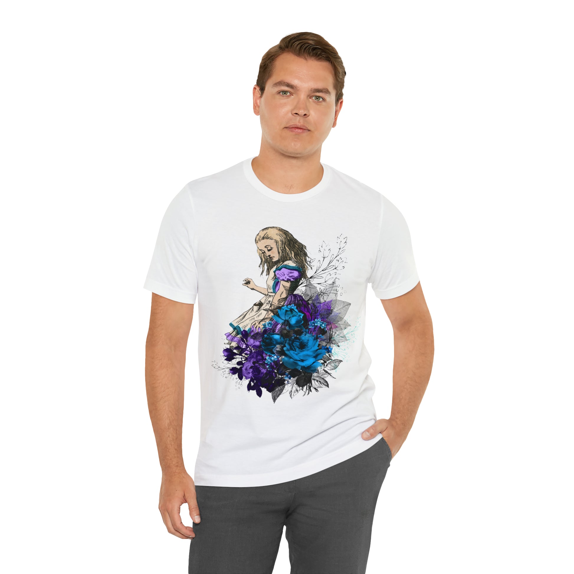 Whether you're an avid fan of the Gothic genre or someone seeking an edgy addition to their collection, this tee serves as an ideal choice. Inspired by the enigmatic tales of Alice but with a twist that resonates with the dark elegance of the gothic world, this shirt is more than just clothing—it's a statement.