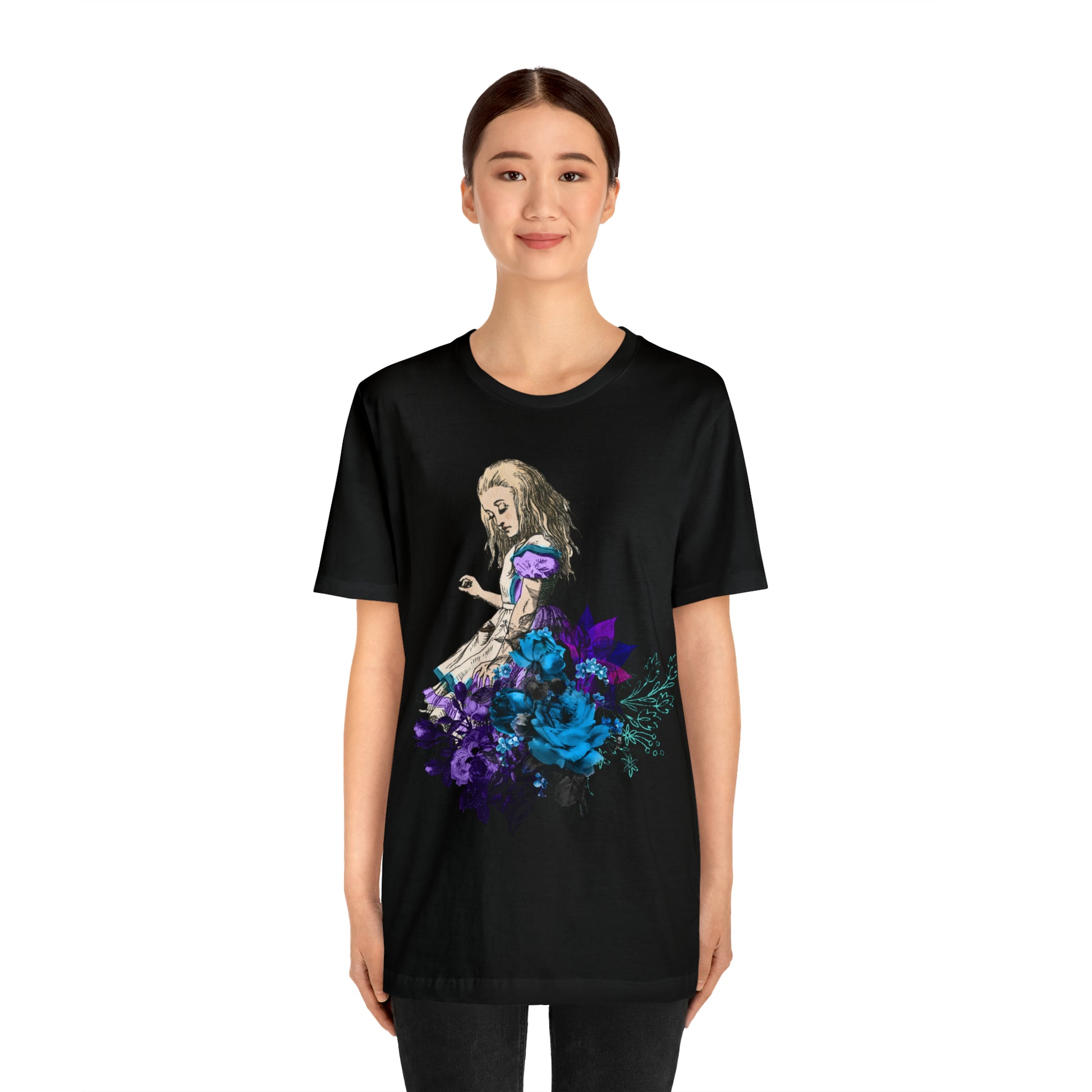 Pair it up with your favorite black jeans or a ruffled skirt to complete the look. Dive deep into the modern gothic wear trend and let the Dark Alice Tee guide you. Order yours today and embrace the alternative fashion like never before."